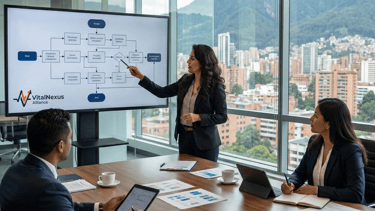 En VitalNexus Alliance entendemos que los desafíos de una organización no son aislados. Una gran estrategia comercial falla sin procesos eficientes, y una operación sólida necesita un propósito claro. Integramos estas disciplinas para ofrecerte una solución completa.